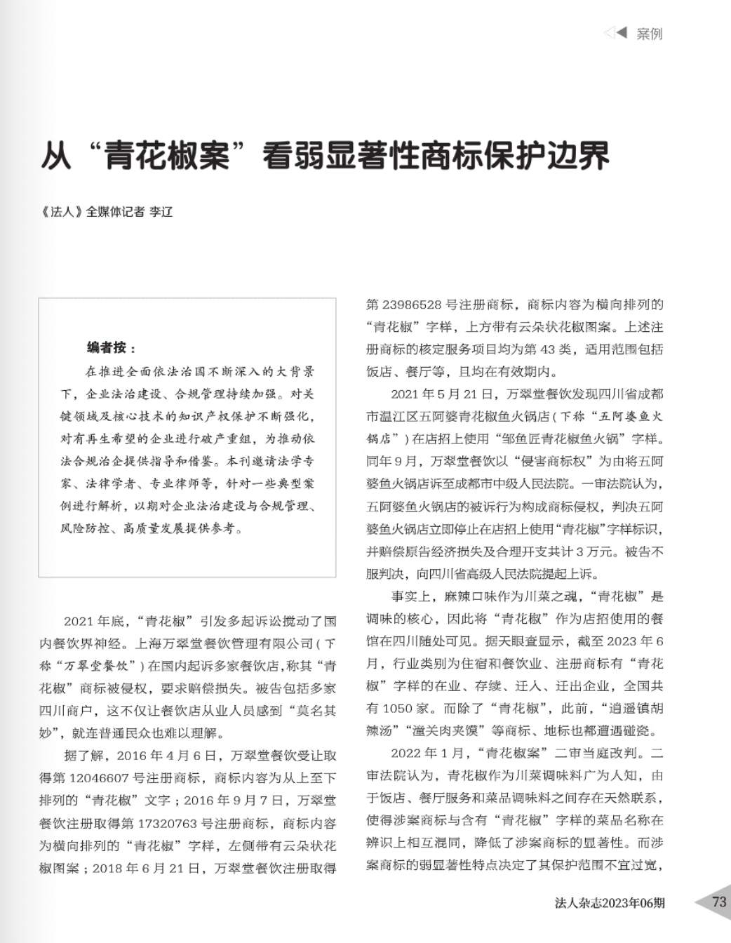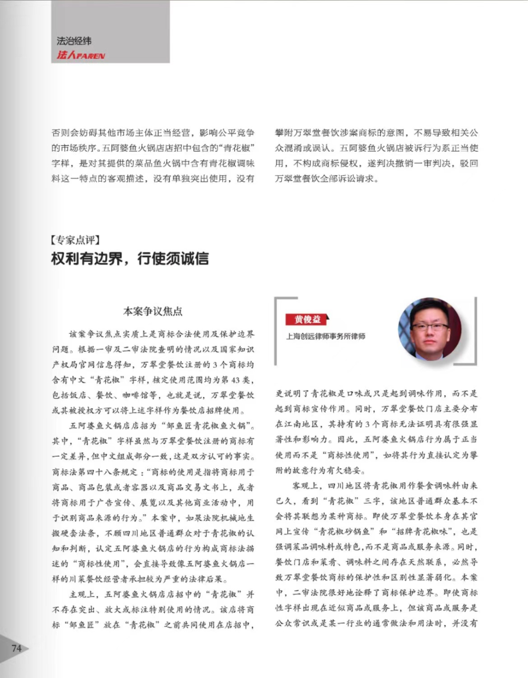 思茅辉知简讯 | 辉知队黄俊益律师应“法治日报”旗下杂志邀请,就“青花椒”案发表专家点评